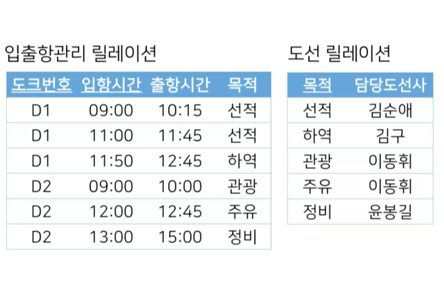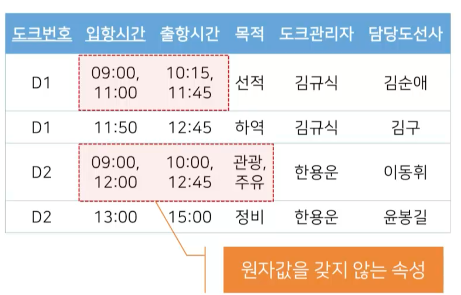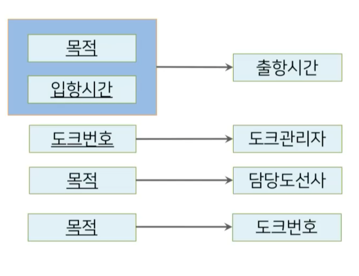 - 김규식이라고 하는 도크관리자가 입항시간이 언제고 출항시간이 언젠지 매칭할 수 없다