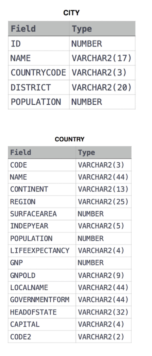 Note: CITY.CountryCode and COUNTRY.Code are matching key columns.