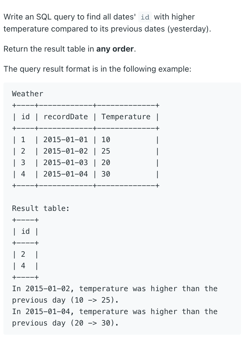 - 이전 날짜(어제)에 비해 온도가 높은 모든 날짜의 ID 찾기