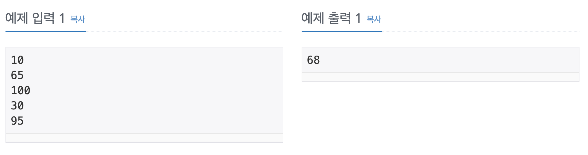 - 평균을 출력해야하므로 다 더한 값/5 → 68.0으로 나와서 int()로 한 번 더 감싸줘야함