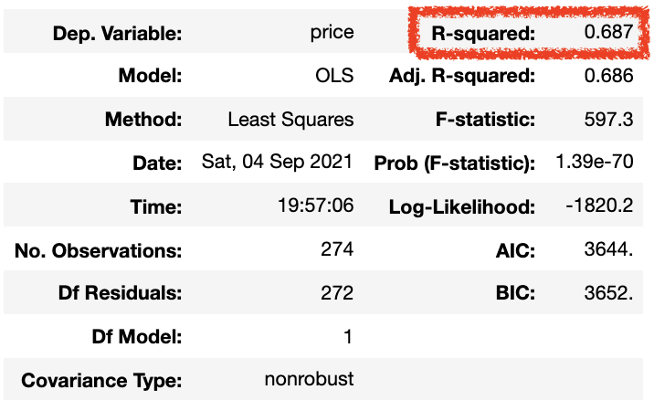 - '모형이 종속변수의 분산의 ~%를 설명한다'