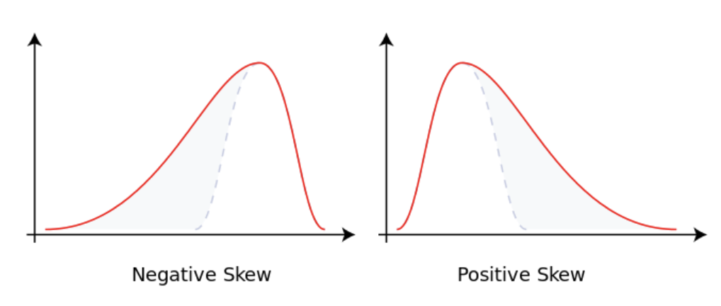 - 데이터가 한쪽 방향으로 치우친 정도(해당 방향으로 극단치가 존재)