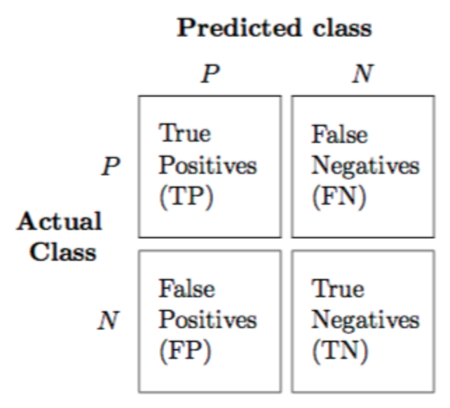 - False Negatives : 1인 레이블을 0이라 하는 경우 → 관심 범주가 아닌 것으로 잘못 분류