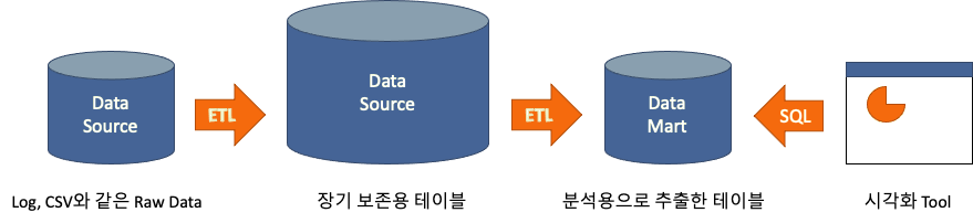 - 집계성 또는 시각화를 위한 작은 데이터를 만들어주는 과정 → 시각화 툴과 연동되어 사용가능