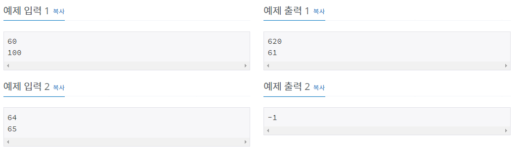입력의 첫째 줄에 M이, 둘째 줄에 N이 주어진다.