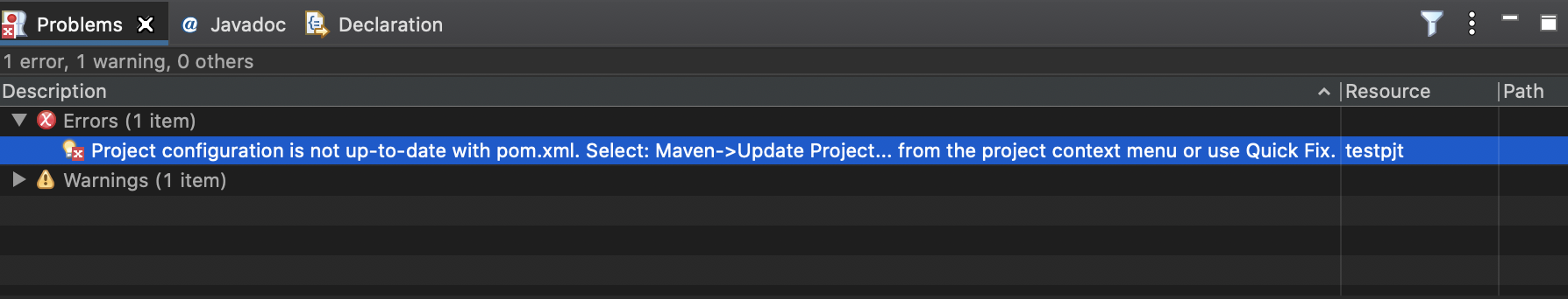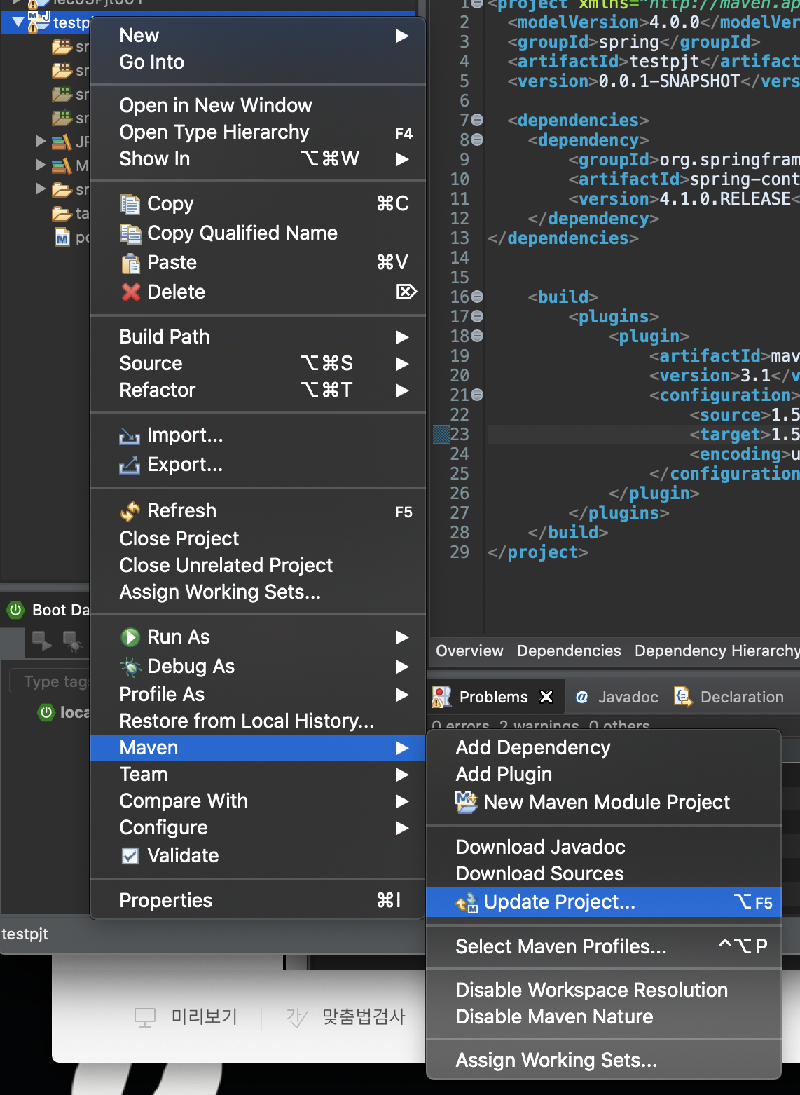 - 다른 프로젝트에서 pom.xml의 구조 긁어왔을 때 발생되는 에러
